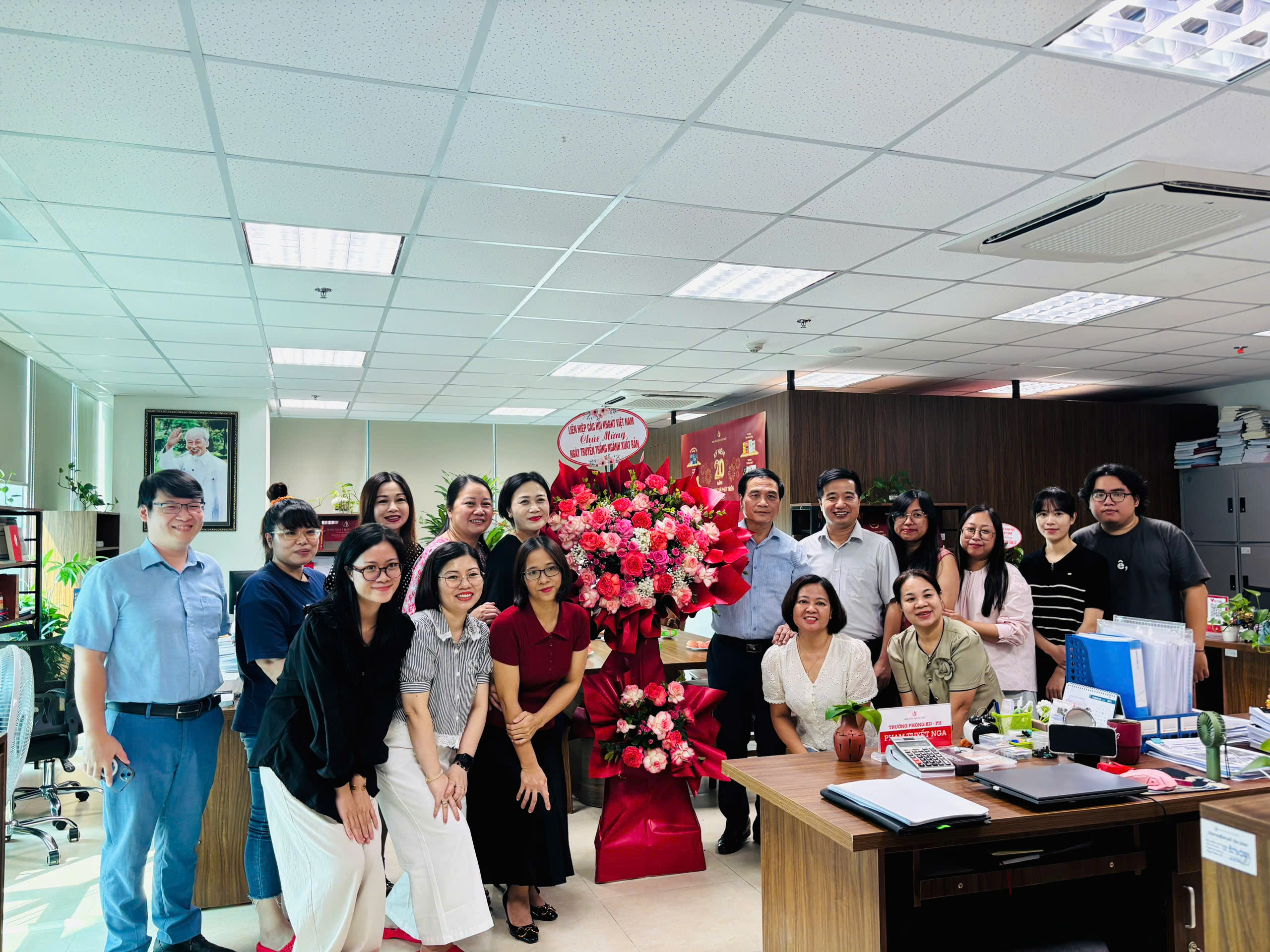 Lãnh đạo Liên hiệp Hội tặng hoa chúc mừng cán bộ, nhân viên Nxb Tri thức